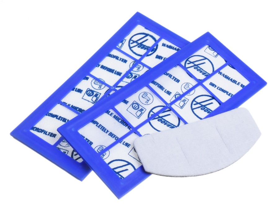 sada filtrů U6 do vysavače Hoover Purepower, 3 ks v baleníV sadě naleznete dva ploché mikrofiltry v plastovém rámečku s gumovým obvodovým těsněním a jeden volný – dvoubarevný mikrofiltr.