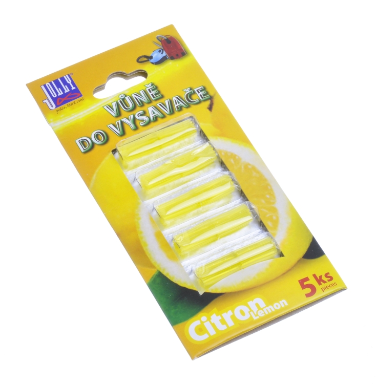 vůně do vysavače – citron – 5 ks tyčinek v blistru. Při vysávání Váš byt nebo kancelář příjemně provoní přirozená a svěží vůně.