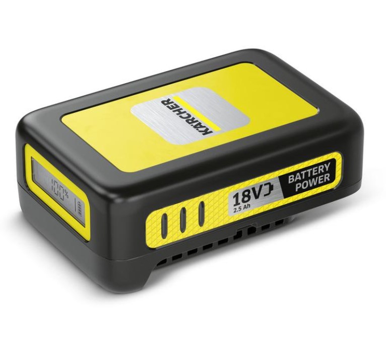 18V / 2,5 Ah výměnná baterie s inovativní technologií Real Time Technology s LCD displayem a zobrazením stavu baterie. Vhodné k využití ve všech zařízeních s bateriovou platformou Kärcher 18 V.