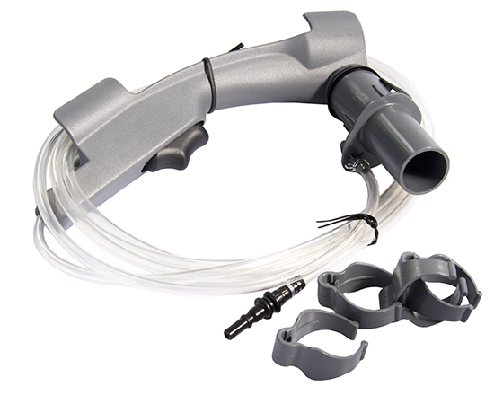 Malá sada šamponovacího přísušenství pro vysavače Zelmer aquawelt, Vodnik.V sadě naleznete madlo se spouští, které se připevní k originálnímu madlu hadice – mačkáním spouště ovládáte průtok čistícího prostředku do tepovací hubice.Součástí sady je i hadička s koncovkou do vysavače, na druhé straně hadičky je nasazena redukce, kterou nasadíte do teleskopické trubky vysavače (variantně i do madla hadice).Do redukce nasadíte tepovací hubici Zelmer.V sadě naleznete i 4 ks držáků pro uchycení hadiček k trubkám.