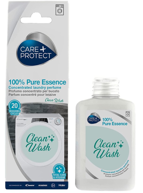 Koncentrovaný parfém do pračky Care+ Protect CLEAN WASH s dezinfekčním účinkem, 100% čistá esence.Dodejte svým oděvům nádech stylu a nechte se zahalit svěží vůní 100% Pure Essence parfému na prádlo Clean Wash od CARE+PROTECT.Nová vůně s hygienizujícím účinkem je ideální pro všechny tkaniny i prací programy. Jeho koncentrovaná esence se snadno váže na vlákna tkanin a díky speciálnímu aktivnímu složení hygienizuje a zaručuje delší vůni po dobu až 5 týdnů!Vůně není rozpustná ve vodě, proto se v ní snadno nerozpouští, ale reaktivuje se při každém kontaktu s vlhkostí, což je ideální pro sportovní oblečení. Srdce parfému tvoří květinová nóta taif růže a magnólie a náznaky bílé broskve a zeleného jablka na pozadí vzácných dřevin vytvářejí kompozici s čerstvými a jemnými tóny. Kupte si jej nyní a použijte jej při každém praní.Vůně přetrvává i po použití sušičky.
