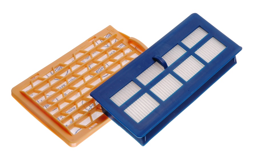 sada filtrů U63 pro válcové vysavače Hoover Capture.Sada obsahuje předmotorový plochý filtr ve žlutém rámečku (do prostoru se sáčkem) a pak výstupní HEPA filtr v modrém rámečku.